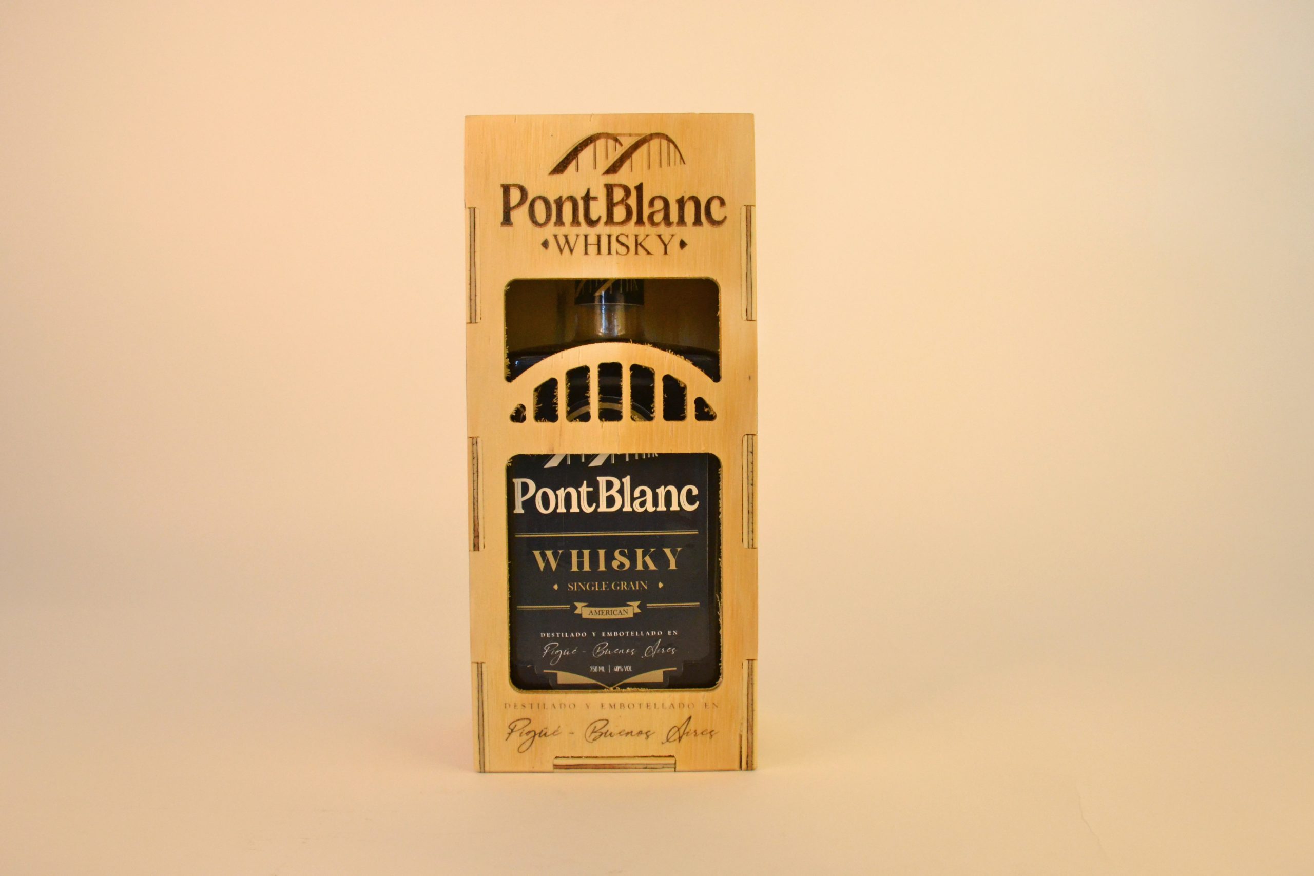 El Pack Premium Whisky Single Grain Pont Blanc eleva la experiencia de nuestro whisky a un nivel superior. Incluye una botella de 750 ml presentada en una caja de madera grabada con el logo de Pont Blanc, pensada como un regalo distinguido o un objeto de colección exclusivo.